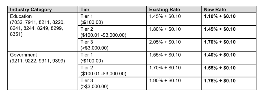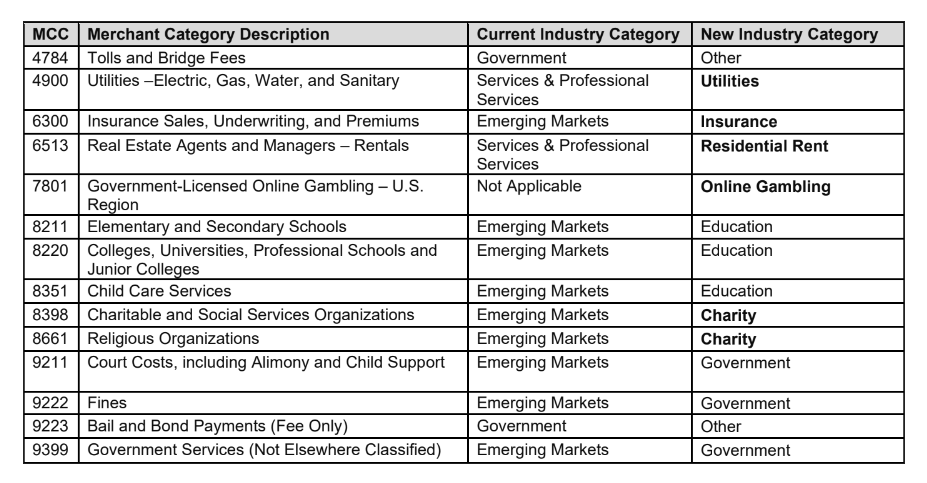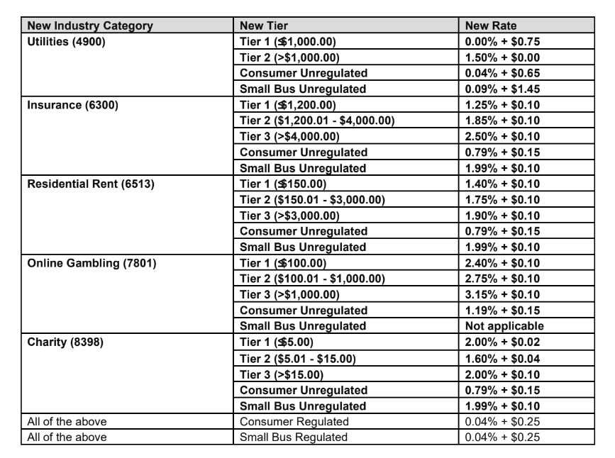 Merchants within select industries will see a shift to new industry categories with lower rates.